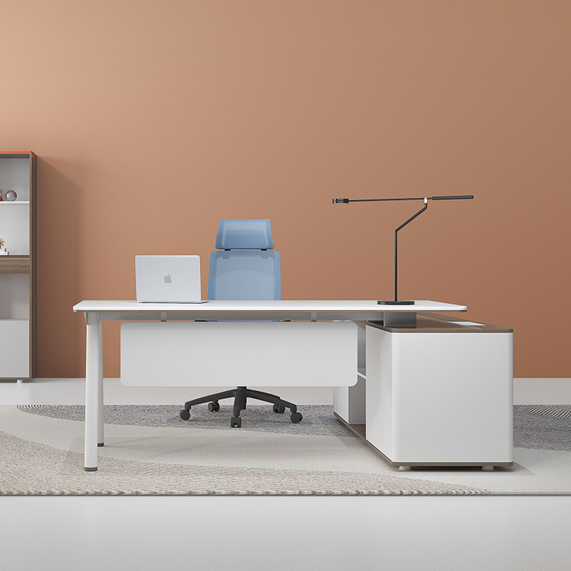 1、基材:環保等級符合E0級標準的MFC板; 2、主臺面博爵淺胡桃,前后斜邊果橙色封邊; 3、副柜頂、底、側板博爵淺胡桃,活動盒子果橙色,其余實木麻白; 4、五金腳靜電噴涂果橙色細砂紋; 5、線盒用白色翻蓋+拆裝的塑料底盒; 6、配密碼鎖和帶USB散熱風扇; 7、班臺可左右互換。